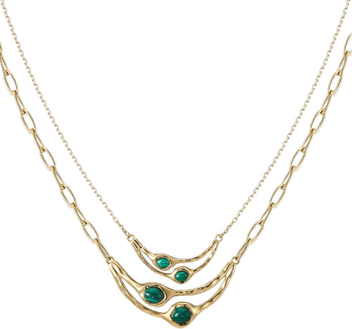 Malachite Necklace, 14K Gold PVD Plated Layered Jewelry Set, 1-Year+ Anti-Tarnish Waterproof Stainless Steel Everyday Green Stone, Well-Made Chunky Paperclip Chain Gift to Enhance Any Outfit for Women
